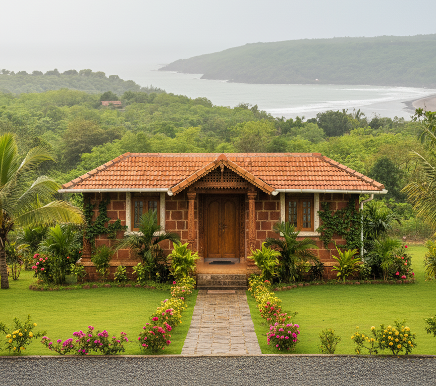 Premium bungalows and apartments nestled in Guhagar’s lush green coastline.